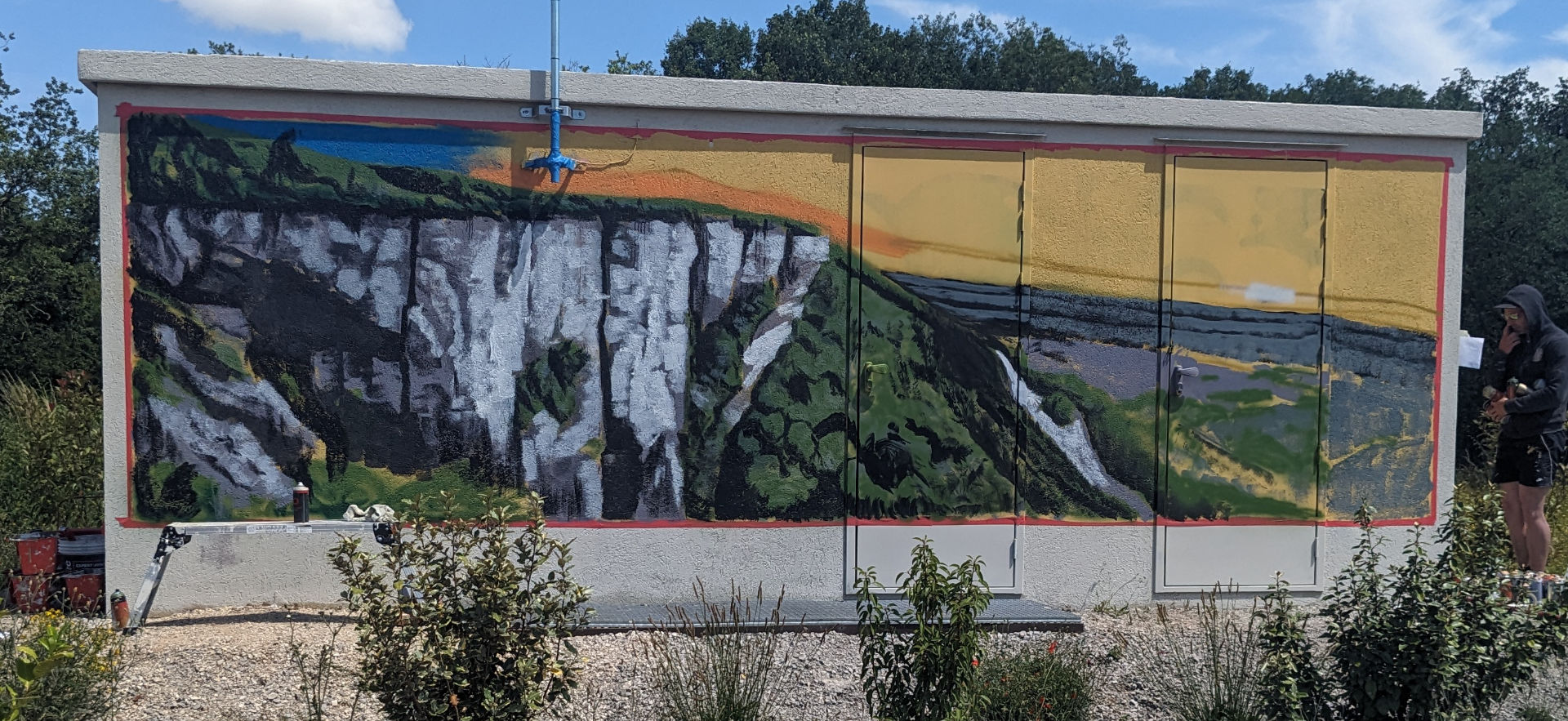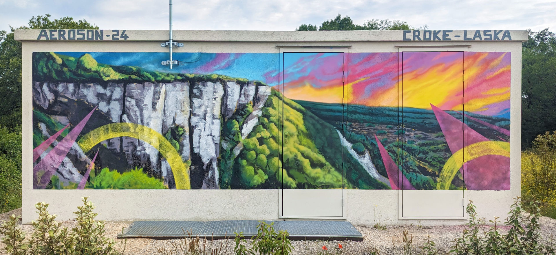 Le transformateur électrique ENEDIS de St-Antonin-Noble-Val prend vie avec un décor inspiré par la région ! En lien direct avec la nature environnante cette fresque transforme un simple transformateur en une œuvre d'art qui s'intègre parfaitement dans le paysage.