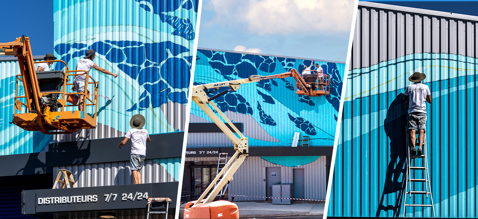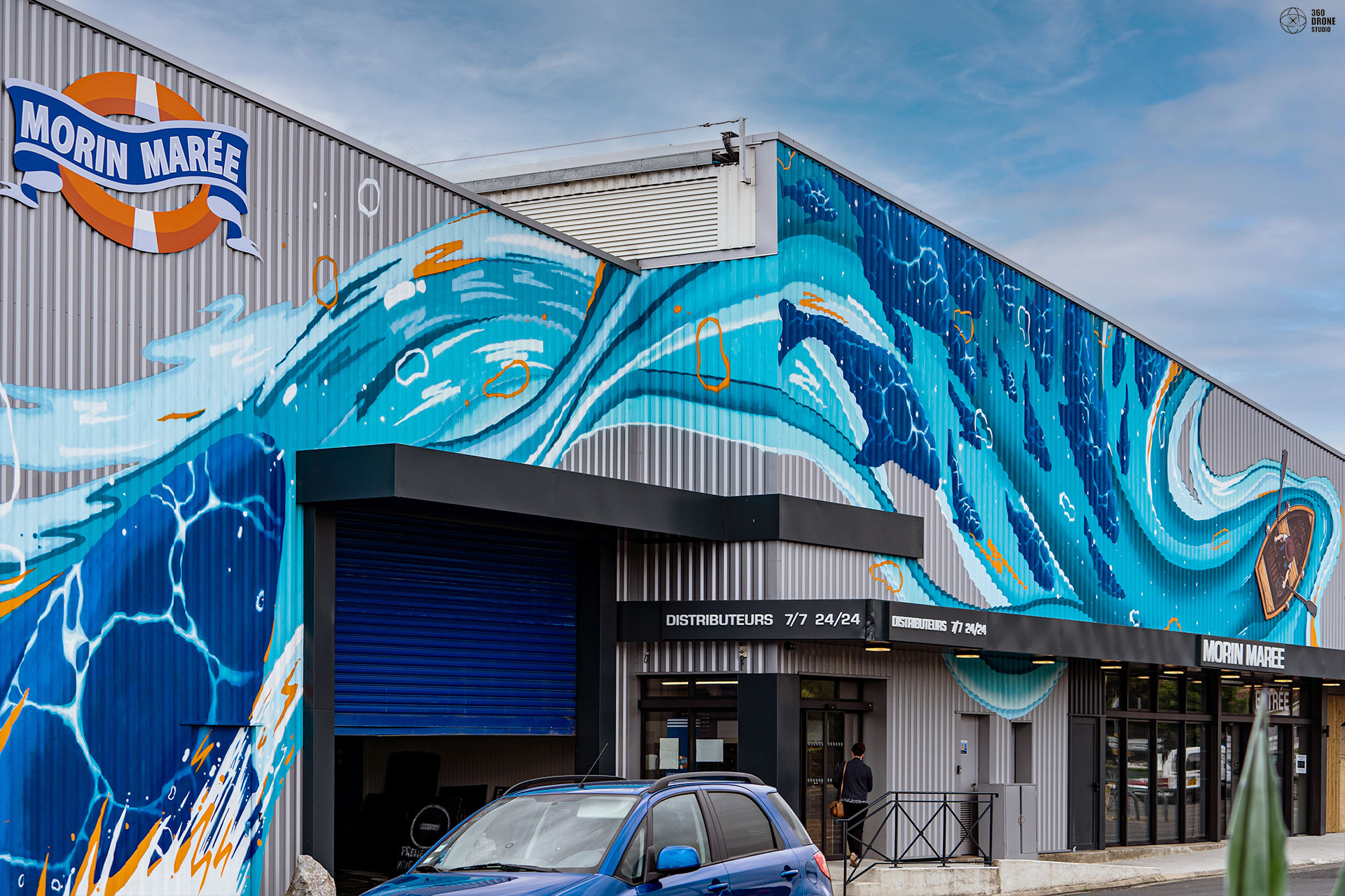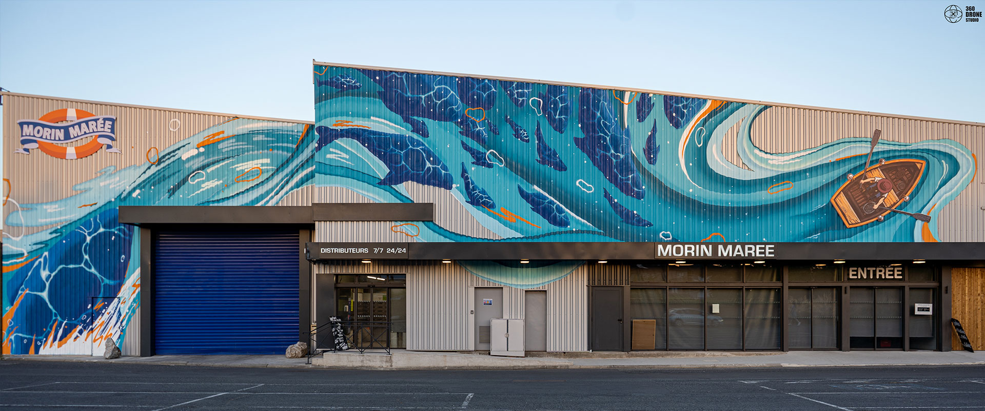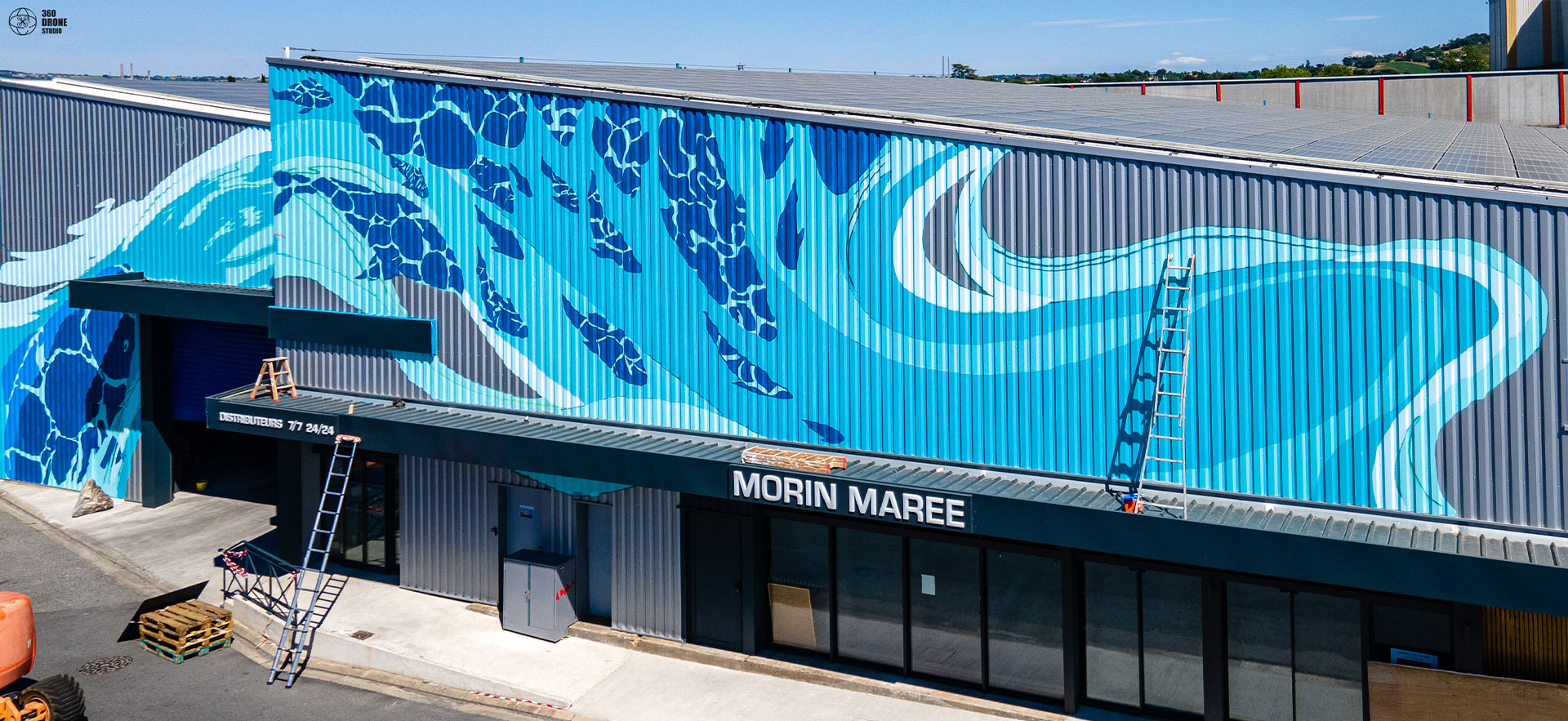 La poissonnerie familiale albigeoise « Morin Marée » nous a contacté pour réaliser un projet artistique sur leur façade, situé à Albi. Nous avions carte blanche pour le visuel, à condition bien évidemment de rester dans l'esprit de l'enseigne et de refléter le coeur du métier de l'entreprise : leur dynamisme, la fraîcheur de leurs produits et leurs valeurs de respect de l'environnement.